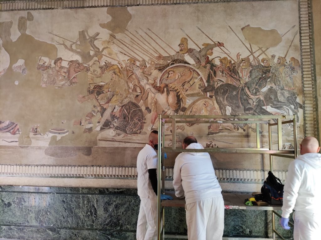 Inizia il restauro del mosaico di Alessandro al MANN