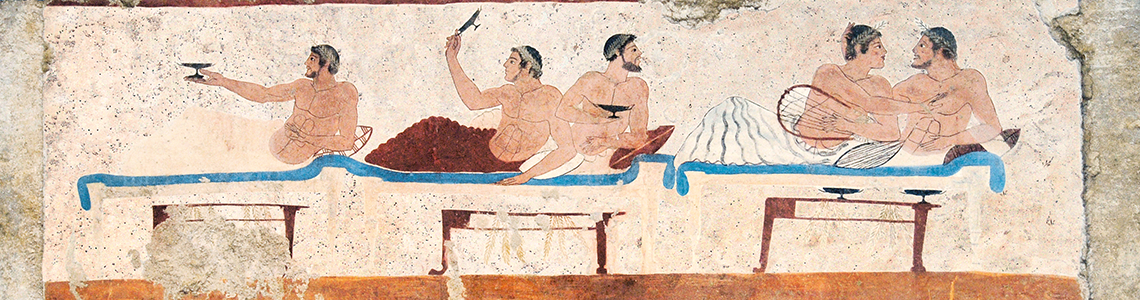 Le immagini che adornano la tomba, il tuffo e scene di un simposio, non rinviano a nessuno dei temi del linguaggio figurativo greco, che si compone essenzialmente di due filoni principali: temi mitologici, e scene di vita quotidiana.