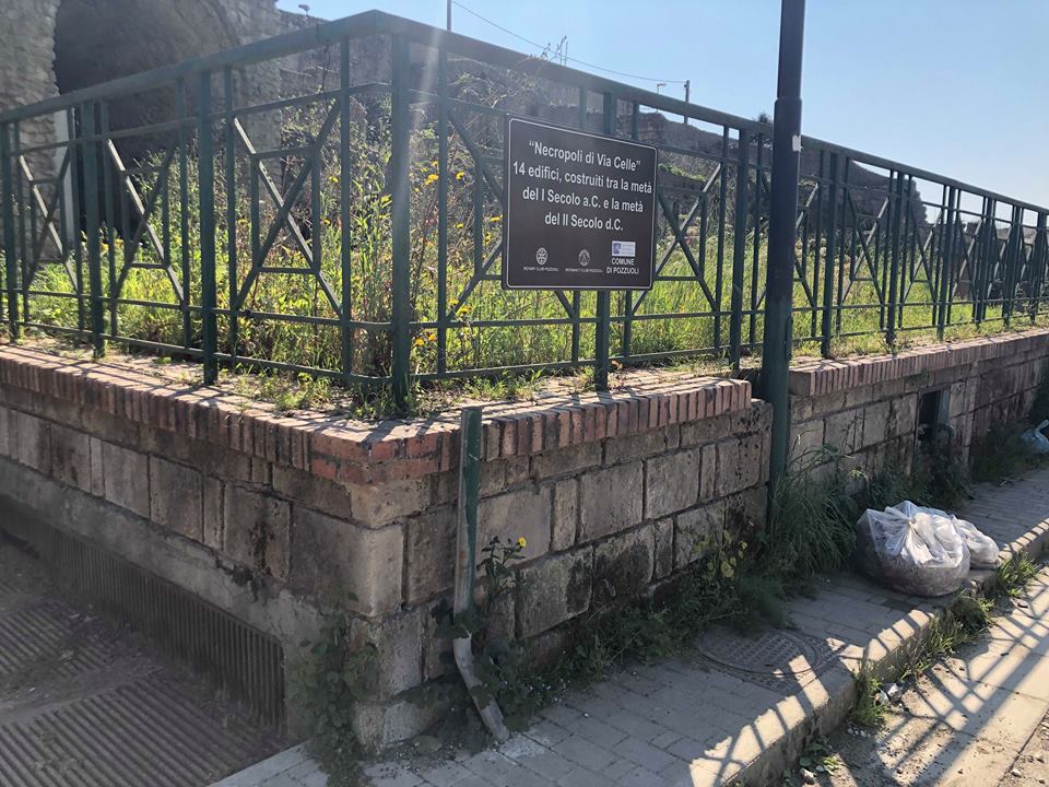 Lo sconcerto mi assale quando percorro Via Celle per rimirare la necropoli romana. Percorsa la breve galleria si staglia imponente la caratteristica struttura a celle in cui venivano conservate le anfore con i resti mortali degli antichi abitanti di Puteoli tra erbacce, cartacce e bottigliette di plastica infilate dappertutto. Addirittura un cesso, si un cesso, messo li e abbandonato fra gli scavi con tutta la struttura.