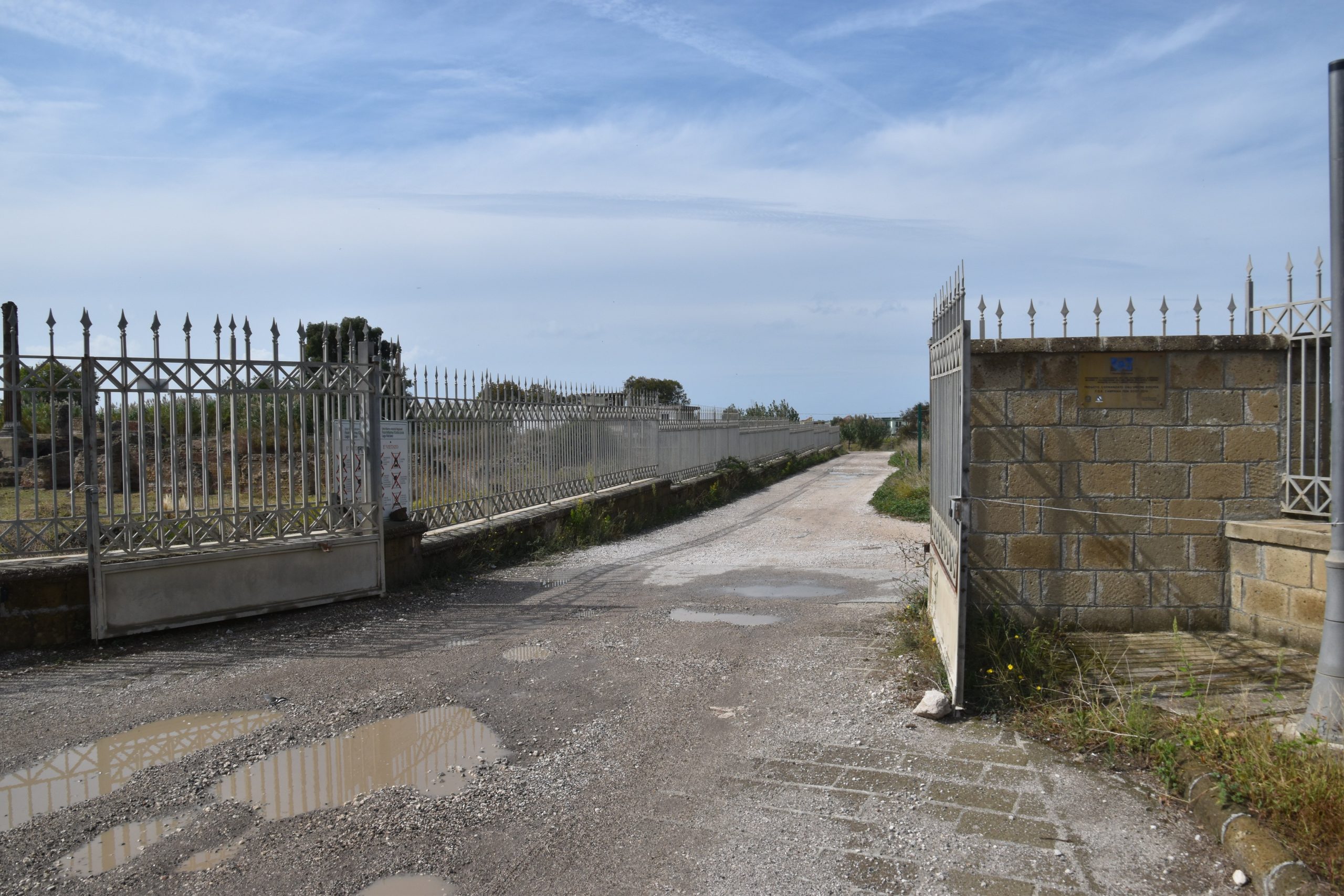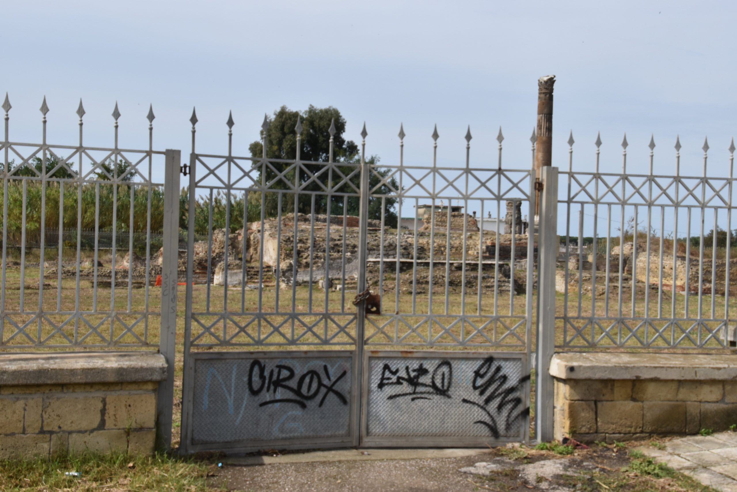 Lì dove dovrebbero esserci studiosi intenti a ricostruire storia di miti e leggende o guide turistiche a raccontare quelle storie in varie lingue a turisti di ogni provenienza, oggi ci sono cespugli incolti e cancelli pieni di ruggine, oltretutto facili da scavalcare: reperti di importante valore storico sono lì, in bella vista, alla mercè di qualsiasi ladro tra canneti selvatici e triste desolazione.
