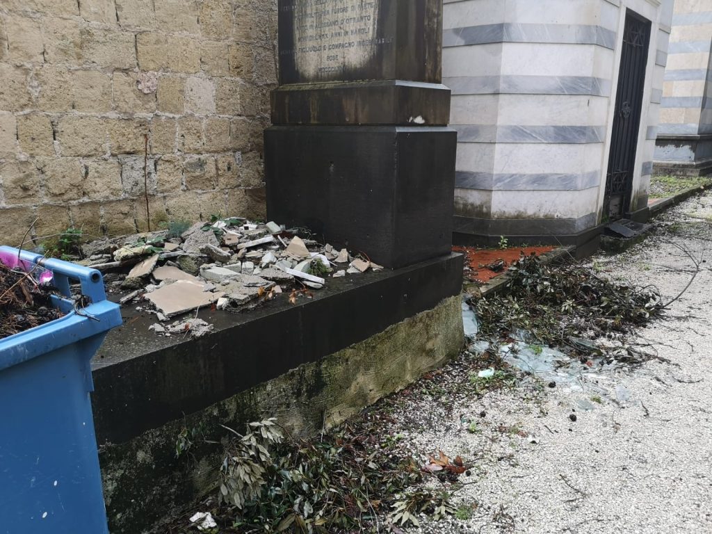 Girare tra i busti degli illustri e vedere lapidi staccate (come quella di Saverio Mercadante) tombe distrutte, spazzatura e sterpaglie che in alcuni casi sovrastano le cappelle, come nel caso della lapide di Ernesto Murolo, è veramente un colpo al cuore. Uno schiaffo alla cultura napoletana. Di cui è reponsabile l’amministrazione comunale (per l’esattezza l’assessore Borriello, responsabile ai cimiteri).