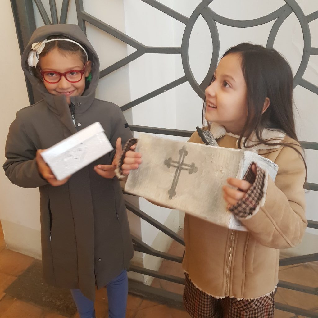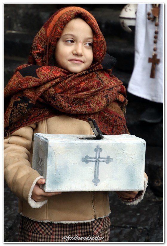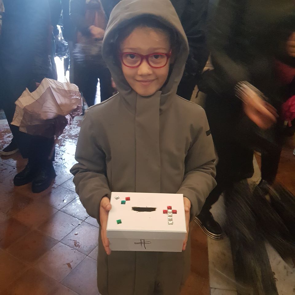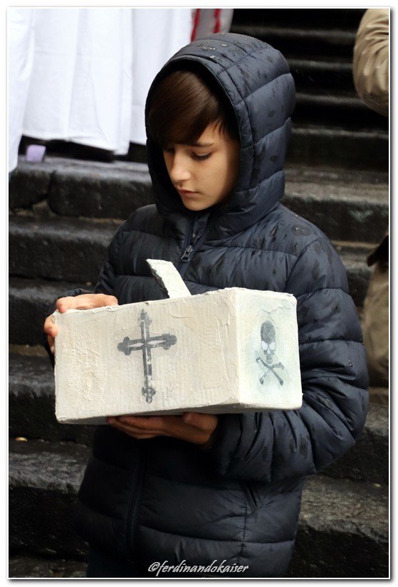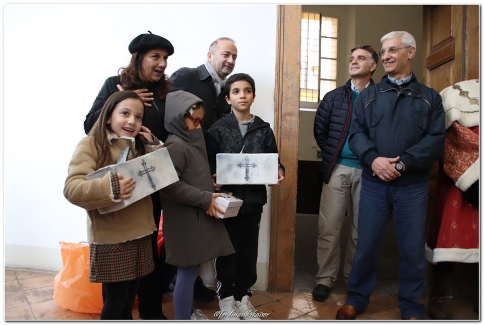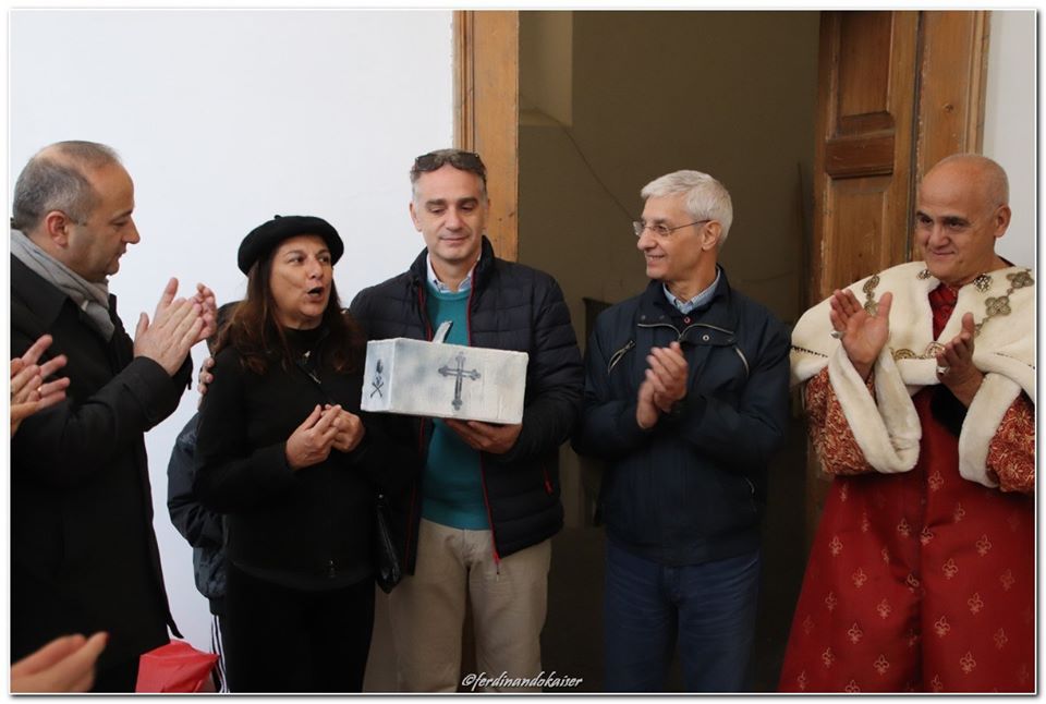 Sophia, la figlia del nostro Antonio Corradini, Paolo e Massimo, due bimbi venuti dall’Abruzzo e Miriam, la figlia di una nostra lettrice che ci ha commossi perché è venuta con la sua cascettella, fatta con le sue manine come facevano i bimbi di un tempo (alcuni le compravano dalle “zarellare”, come racconta appunto Eduardo in Filumena, altri le facevano da soli come racconta un padre del futurismo quale il napoletano Francesco Cangiullo nel libro “Le vie della città” del 1937): sono stati loro i quattro bimbi protagonisti di questa giornata piovosa ma piena di passione, che ha visto tanti partecipare (110 persone sono venute dall’Abruzzo, con Fontevecchia) per ritrovare questa antica usanza, insieme alla tradizione dei frati morti e dei coloratissimi Pulcinella abruzzesi. Una mattinata gioiosa e anche danzante, nelle sale di San Domenico Maggiore, con Fantasie d’Epoca a organizzare quadriglie che hanno coinvolto tutti, anche i bambini.