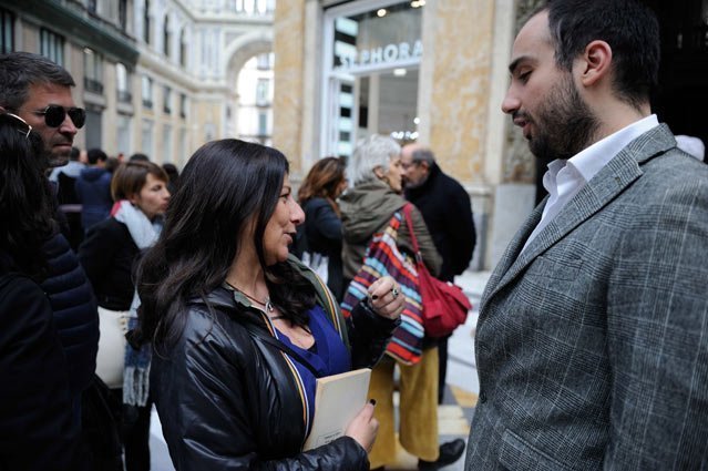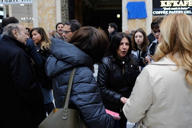Così come gli abitanti del civico 27 , che non hanno avuto titubanze nell’approvare la proposta (che ha avuto anche l’approvazione della Soprintendenza): molti, nemmeno nel palazzo, sapevano che là, fino a 92 anni fa, c’era un giornale così importante per la storia di Napoli. Un giornale fino a oggi quasi finito nell’oblio, anche se non per tutti, come dimostra la presenza di Gaetano Bonelli, noto collezionista di memorabilia, creatore del Museo di Napoli, che è qui e che ha portato con sé foto d’epoca di abbonati de “Il Giorno” (la Serao, un anno, regalava una foto gratis a ogni abbonato, un altro anno regalò un ombrello come raccontava in un divertentissimo moscone) e il tagliando per accedere alle matiné, una sua geniale invenzione, mattinate-spettacolo solo per gli abbonati, come ricorda sempre Doria nel pezzo già citato.