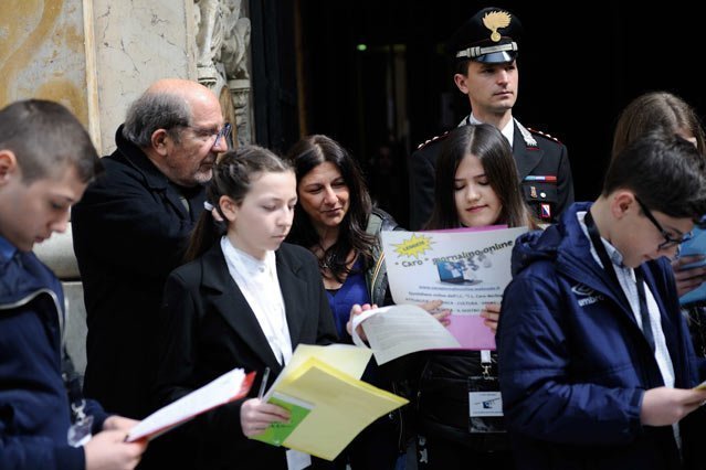 La prova vivente dell’importanza delle sue parole sono le insegnanti dell’Istituto Caro Berlingieri di Secondigliano che fanno “Caro giornalino on line”e che oggi sono qui, con i piccoli allievi, soprattutto ragazze, lentigginose, sorridenti, emozionate tredicenni che improvvisamente ti intervistano e fanno domande sulle donne, la parità, il giornalismo (Promettiamo pubblicamente che ve li racconteremo prossimamente, da vicino).