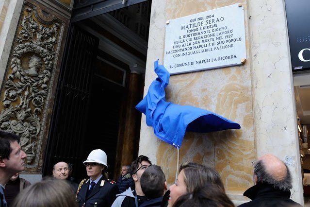 Più si legge e si capisce la forza di Matilde, più la si ama. Perché è la sua forza che questa mattina ha portato tanti a partecipare alla cerimonia di inaugurazione della targa – proposta alla Commissione toponomastica nel 2017 – che ricorda, per una strana coincidenza della vita, oggi 27 marzo, esattamente 115 anni dopo la sua nascita, Il Giorno, il giornale che Matilde diresse per 23 anni, pur non firmandolo sempre da direttore; il giornale del “Seraismo” puro, come scrisse Gino Doria in un suo ricordo della Serao; il giornale dove tutto era a misura della Signora, anche la stessa scrittura dei collaboratori di quelle pagine che accompagnarono la vita dei napoletani (arrivando ad avere fino a 20mila abbonati) per 23 anni di vita cittadina.