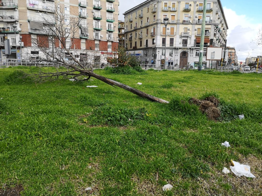 Un piccolo spazio verde incastonato in un crocevia di caos e smog. Piazza Nazionale è il simbolo del degrado urbano in cui ristagna l’area a ridosso della stazione centrale di Napoli e la misura del fallimento dell’amministrazione centrale e locale. In questa piazza invasa da rifiuti, da erbacce e da alberi divelti dai vandali e dai giardinieri di professione, si erge un’isola di tappeti con due altalene e un paio di scivoli per bambini perennemente interdetti da transenne e nastri arancioni.