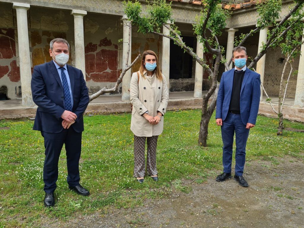 La definizione di siti “minori” per Zuchtrieghel è quasi dispregiativa e preferisce chiamare Oplontis, Stabiae, Boscoreale, siti periferici che raccontano un intero territorio e la sua produttività: “A me non piace parlare di siti minori perché fanno parte a tutti gli effetti del sistema Pompei, non solo turisticamente come fruizione ma come città antica facevano parte di un paesaggio, di un territorio. La produzione agricola che vediamo poi anche nelle case di Pompei, la ricchezza delle ville e delle domus di Pompei è anche espressione di un’economia del territorio che era connesso con tutto il Mediterraneo come fanno intuire reperti che vengono dalla città, dal territorio. Noi vogliamo raccontare questo paesaggio mediterraneo ai visitatori ma dall’altro lato dobbiamo lavorare ancora con gli enti locali sui servizi, i collegamenti, l’idea di creare una passeggiata archeologica che connette vari siti: Pompei, Boscoreale anche Oplontis, Sarebbe bello lavorare poi sui servizi di informazione, di segnaletica, il digitale. Oggi si può fare tantissimo. Quindi raccontare a tutti coloro che vengono a Pompei che Pompei fa parte di un territorio dove c’è tantissimo da scoprire”.