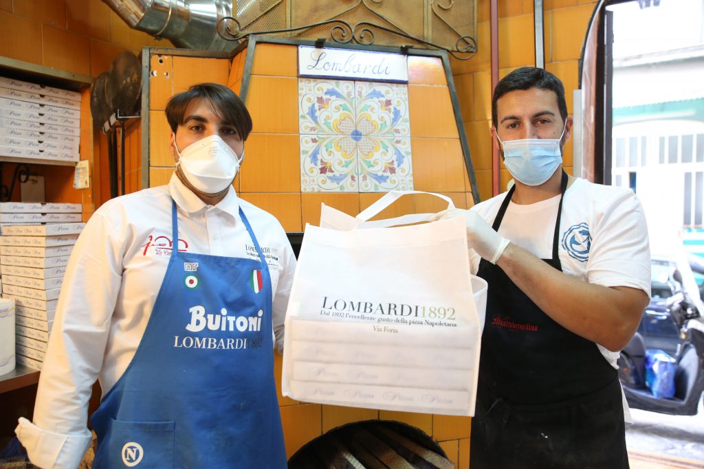 C’è un traffico intenso mentre entriamo e Roberta scatta alcune immagini dei due fratelli all’opera. Tra banco, forno e cartoni, parte il raider con le sue scatole inconfondibili. “Noi abbiamo riaperto perché è giusto così. Bisogna ricominciare. Certo se la situzione resta questa sarà difficile andare avanti, ma la voglia di ricominciare era troppa” confessa Enrico “e questa è la situazione, vediamo cosa succede nelle prossime settimane…”. La clientela affezionatissima dei Lombardi li ha assediati. Prima delle 16 erano già decine le chiamate arrivate alla storica pizzeria di via Foria.