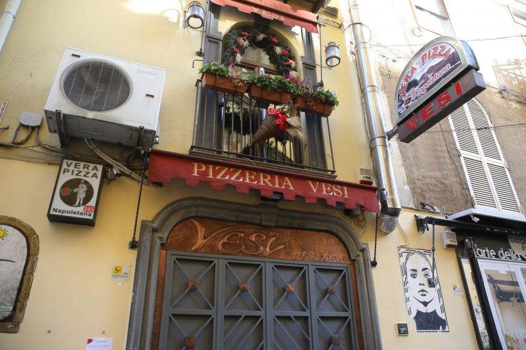 Ci dirigiamo verso i Vergini, dirette da Lombardi a via Foria, una delle pizzerie “Centenarie” che ha riaperto. Passiamo davanti all’altro Oliva, quello più famoso, Concettina ai Tre Santi, ma è chiuso, anche se ci avevano dato la falsa informazione che l’avremmo trovato aperto a distribuire pizze gratis ai più poveri.