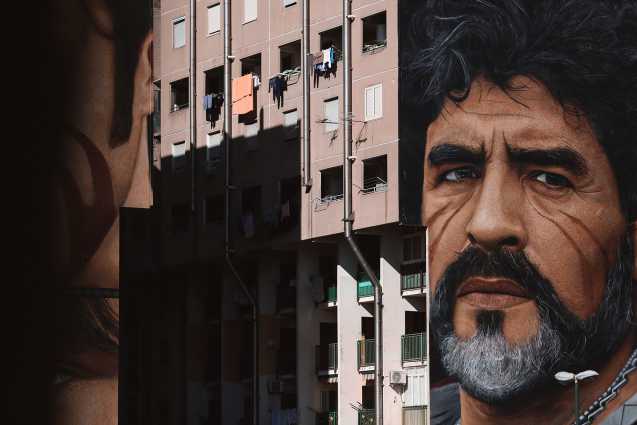 Il grigio dietro ai murales di Maradona e del Che