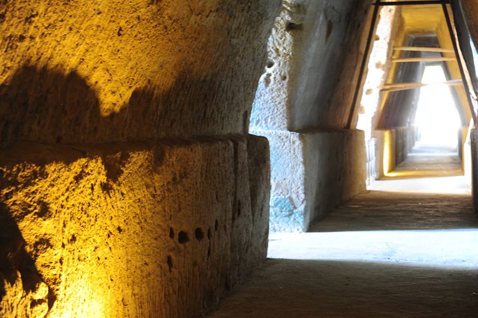 Di fronte sulla terraferma un colle che sembrava la loro rupe a Cuma. Sui suoi fianchi si aprivano caverne tutte rivolte a Levante, verso il mare dove sorge il Sole in estate. Era un indizio importante. Salirono in molti, salirono fino a trovare un pianoro di tufo quasi alla sommità di quel colle. Ora un antro, una grotta rivolta anch’ essa a Levante. Si guardarono in viso col cuore che cuore batteva forte nel petto. Entrano. Gli occhi abbagliati dal sole non vedono niente. Nel silenzio si sente solo il respiro affannoso. Poi le tenebre si schiariscono. Ora urla di gioia e pianti. Cadono in ginocchio.