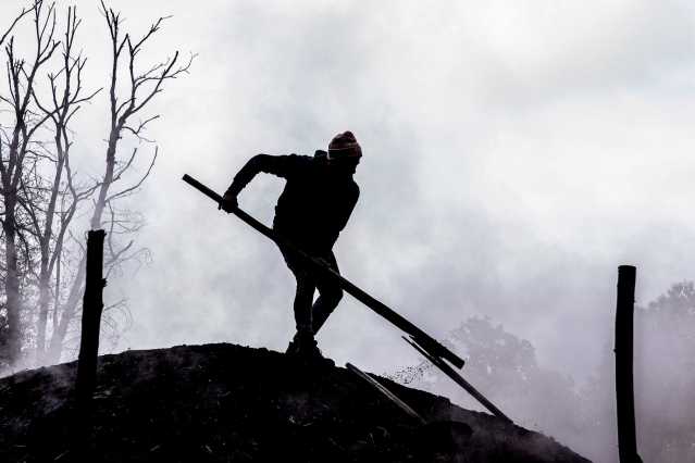 - carbonai lavorano allo SCARAZZO, l’antica struttura in legno ideata dai Fenici pr produrre carbone vegetale. A serra San Bruno è ancora fiorente questa attività che vede la famiglia Scrivo come ultimi depositari in Italia della antichissima produzione. ph. Mina Grasso/Antimo Buonanno/KONTROLAB
